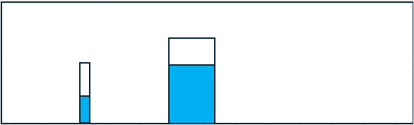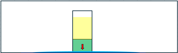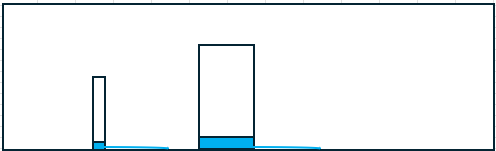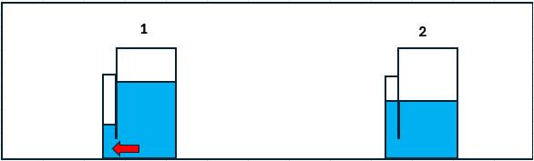 - Large bucket diameter = large capacitance (C), so the same Q raises the level less than in a small bucket.
